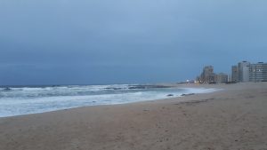 Ještě jednou zahnout doleva a pak kousek rovně a… ATLANTIK! Hrozivě dunící monstrum s naježenými bílými hřbety vln, které se rozbíjejí o pobřeží. Vzduch prosycený slanou vlhkostí a racci, kteří skoro nehybně visí ve vzduchu a pak se s vřeštěním vrhají k hladině oceánu.