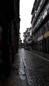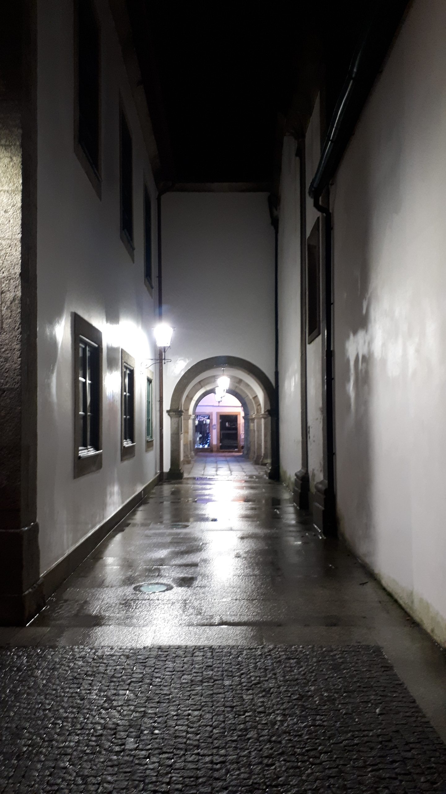 Je půl 7 ráno, všude mokro. V noci asi pěkně lilo. Nicméně, je teplo, nohy šlapou úplně lehce, všechno cajk. Potemnělými ulicemi Vila do Conde jdu sám, město ještě spí. Křivolaké uličky dlážděné kočičími  hlavami, staré domy zdobené keramickými mozaikami a ve vzduchu je cítit moře. Uřvaní racci nad hlavou jsou neklamným důkazem, že se blížím k Atlantiku.