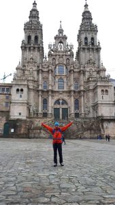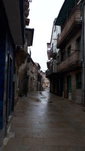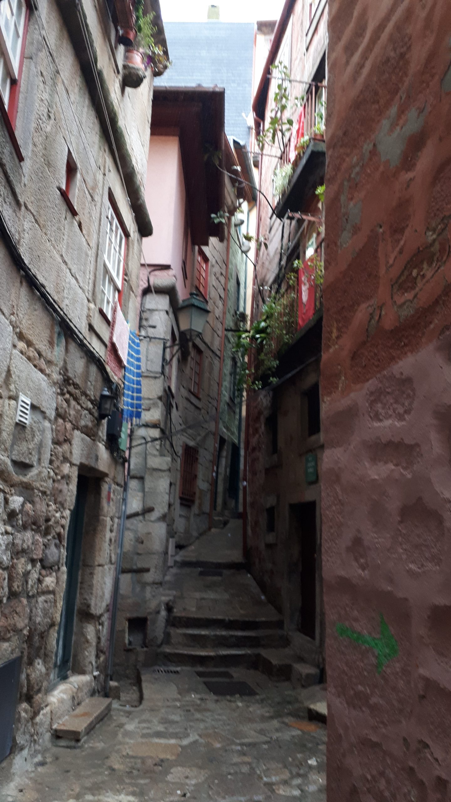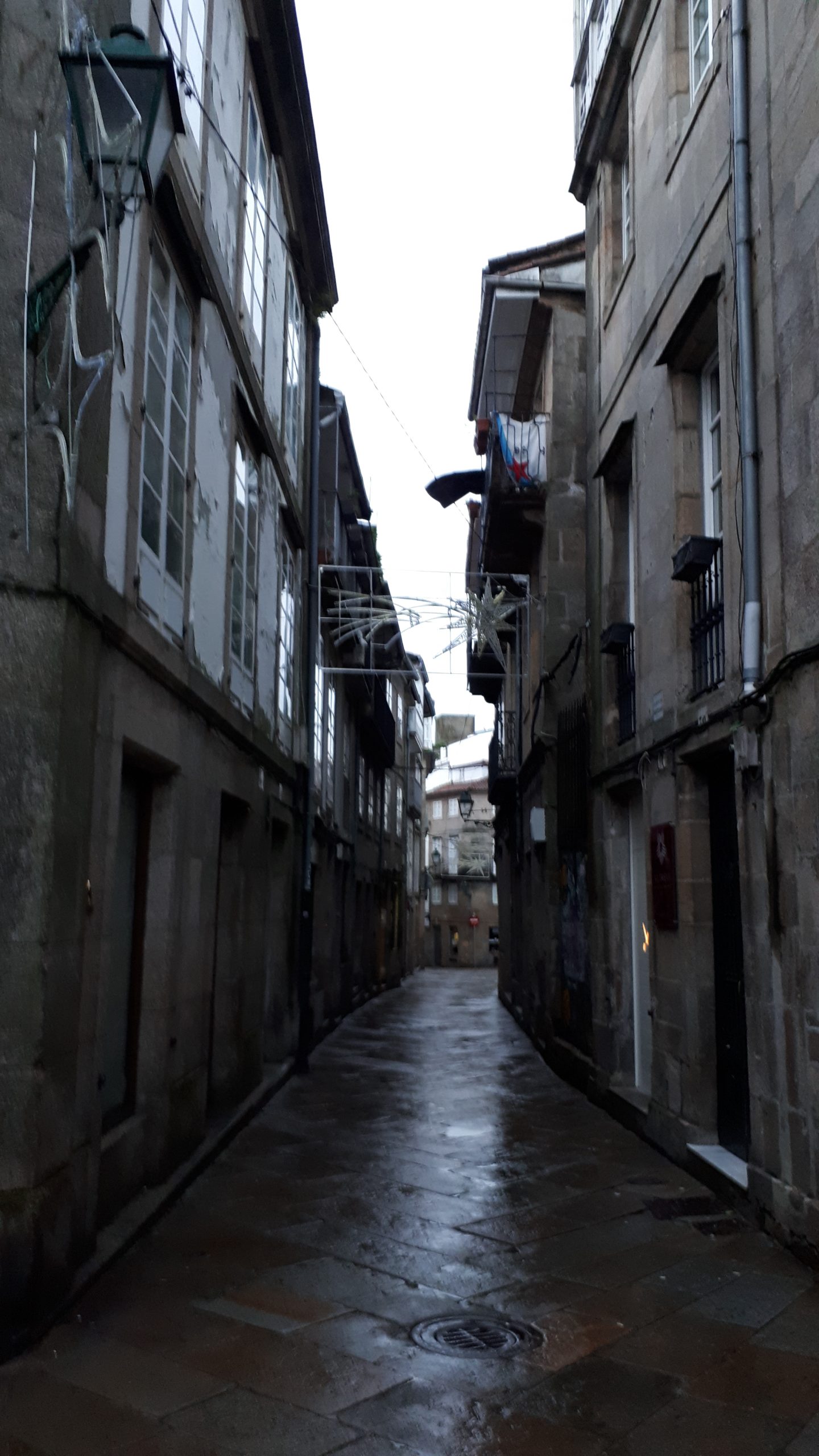 Po včerejší půlnoční koupeli v termálním pramenu jsem jako znovuzrozený. Všechny bolístky jsou ty tam a nečekaně i hlava mě popohání z postele. Dnes dojdu do Santiaga, nevím sice jak, ale dojdu tam. Jenny, děkuji ti za ten včerejší nápad jít se koupat do termálu. Byla to oslava čirého bláznovství. No jen si to představ, dva nahatí,  lehce picnutí blázni běhají půlnočním centrem města a ráchají se v kašně s horkou vodou. Směju se ještě teď. Ráno je sychravé po nočním dešti, zvedá se vítr a od moře sem žene deštěm nalité černé mraky. Posledních 45 kilometrů bude očistec, ale zvládnu to. Když si vybavím všechny ty malichernosti, které jsem řešil před odjezdem a myslel si, že možná nastal konec světa, musím se smát. Ve světle posledních několika dní, to opravdu nic není. Teprve tady jsem posouval své hranice. Tělo i mysl musely ven z komfortní zóny. Tisíckrát jsem si tady řekl: “Seru na to! Nikam dál už nejdu.“ A tisíckrát jsem si odpověděl: „Srabe!“