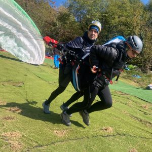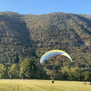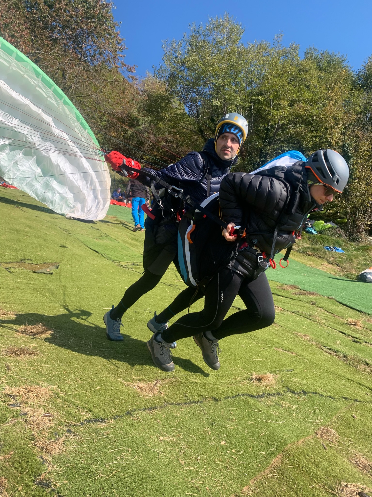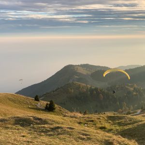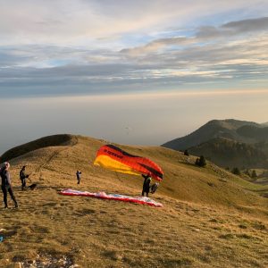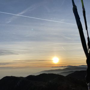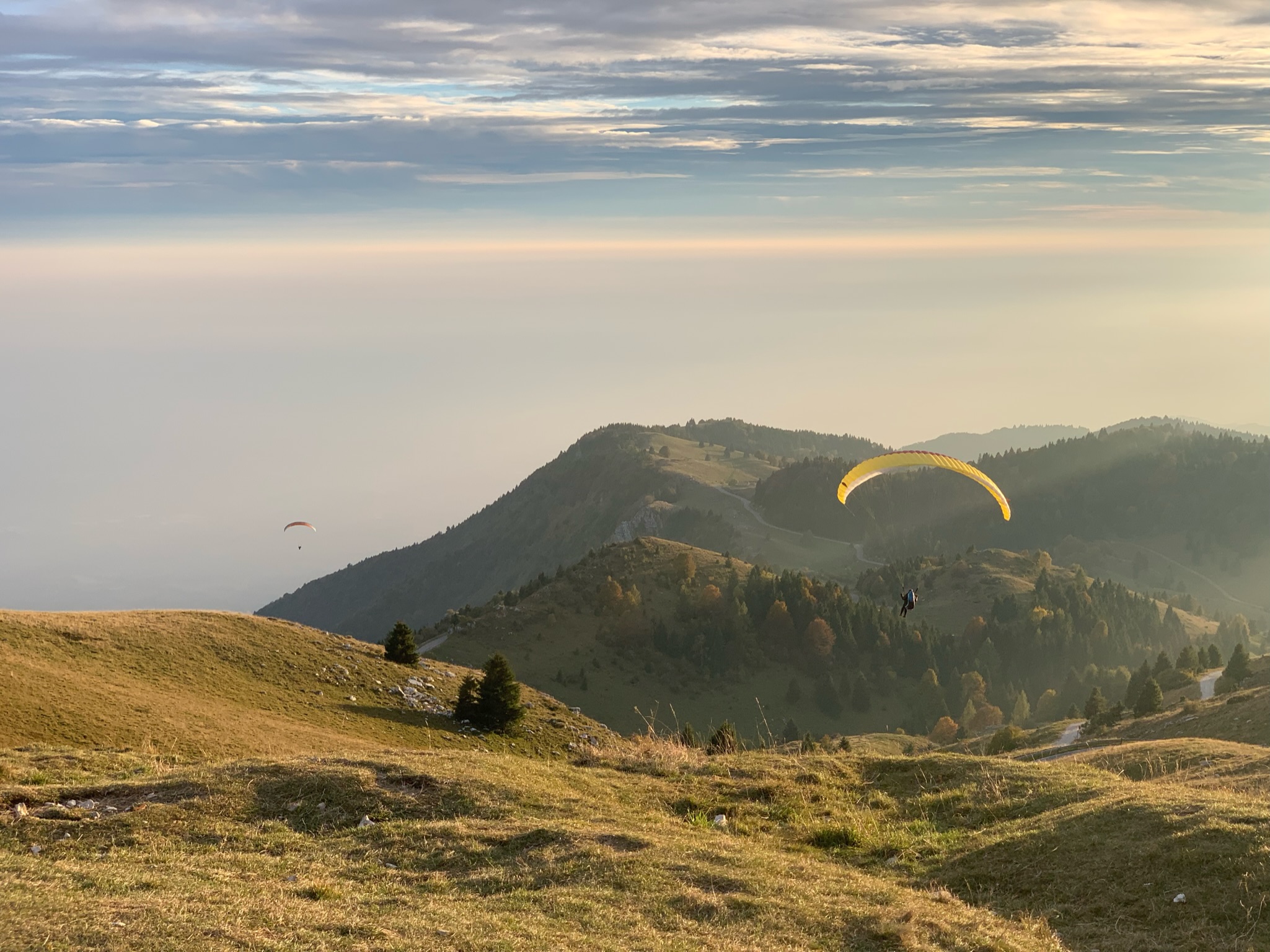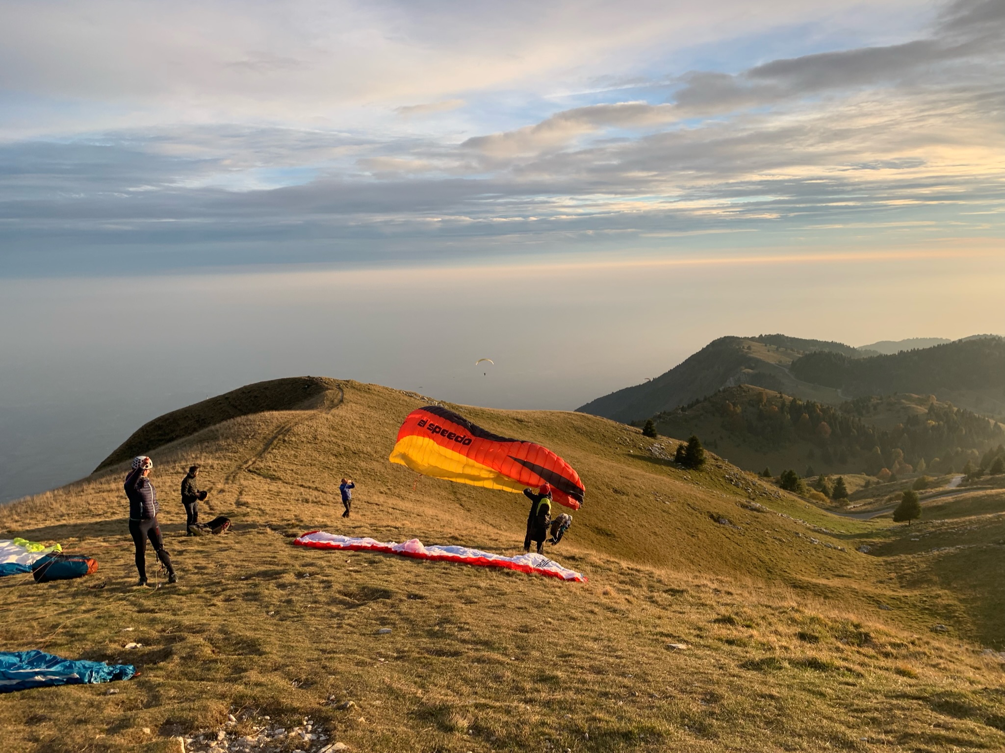 Poslední den jsme si slétli jednou dolů a chvíli poseděli na startovačce. Kochali jsme se krásným počasím a výhledem na horizont hor a krásné modré nebe poseté paraglidisty. Dumali jsme, že se tam chceme zase vrátit. Netrvalo dlouho a rozhodli jsme se tam vydat znova na prodloužený říjnový weekend. O dva týdny později jsme zase byli v autě směrem do Bassána a těšili jsme na další dobrodružství spojené s paraglajdingem.